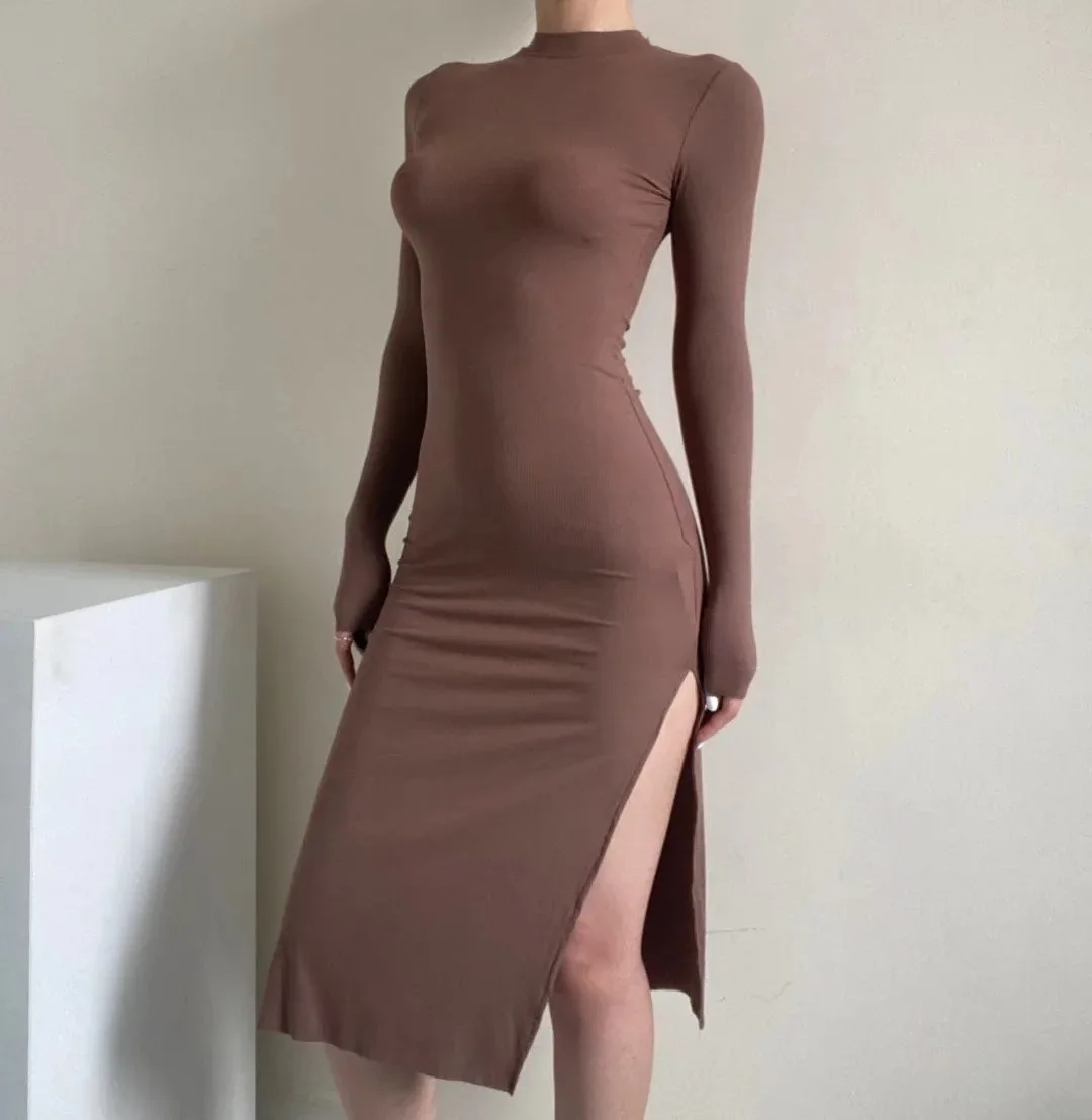 Autumn Beautiful Sexy Dresses For Women Basic Solid Tight Side Slit Black Soft Girl Long Sleeve O Neck Bodycon Knitted Dress Dresses Aliexpress